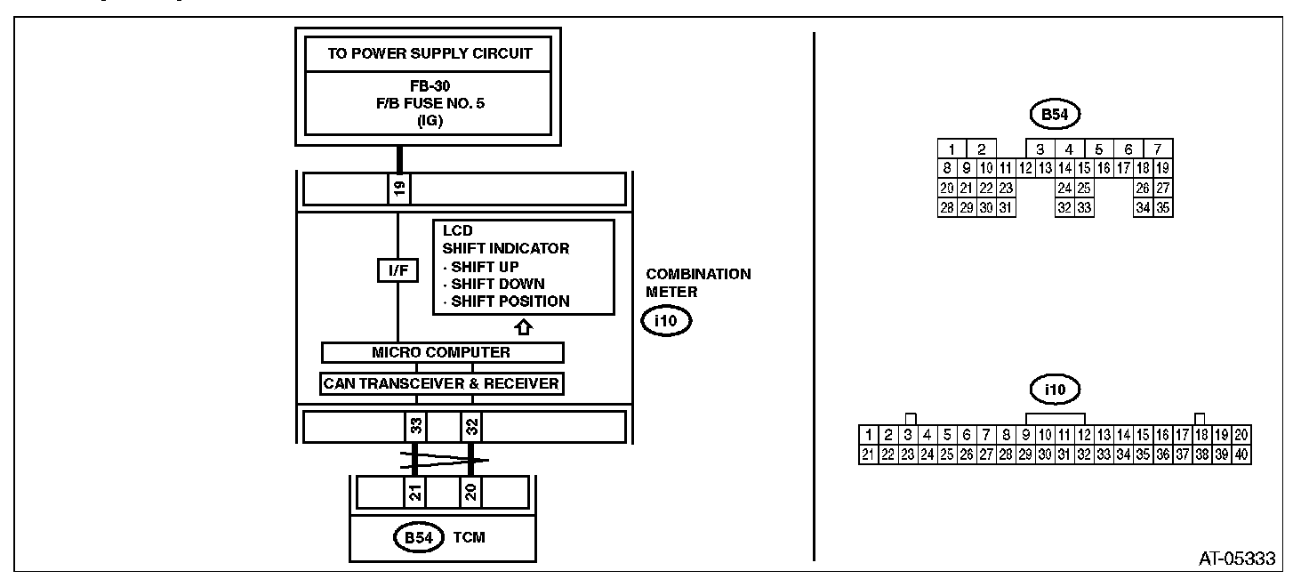 ^ Output signal circuit of shift indicator is open or shorted.