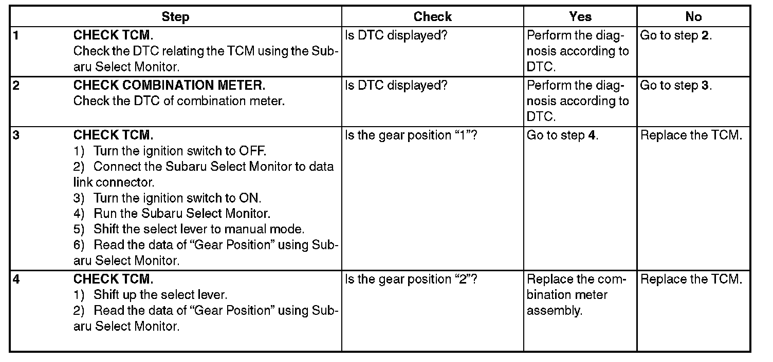 Diagnostic Procedure Without Diagnostic Trouble Code (DTC)CHECK SHIFT INDICATOR