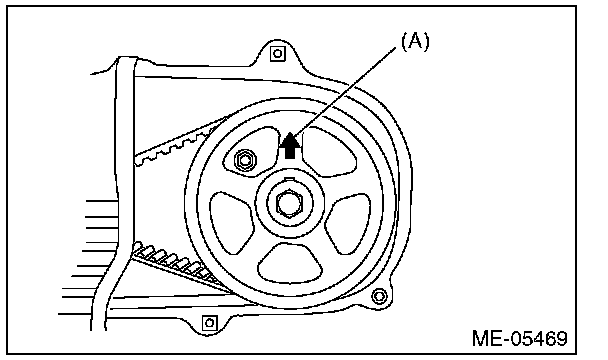 When the arrow mark (A) on cam sprocket LH is at the top position, the #1 cylinder piston is at top dead center of the compression stroke.