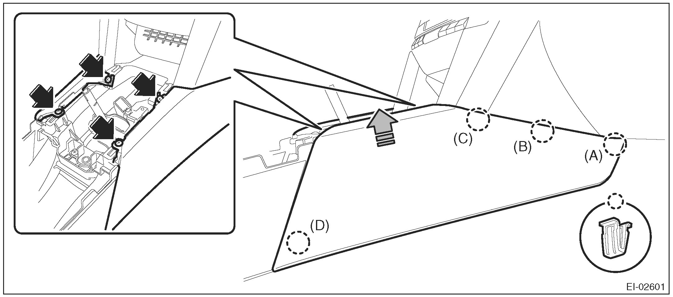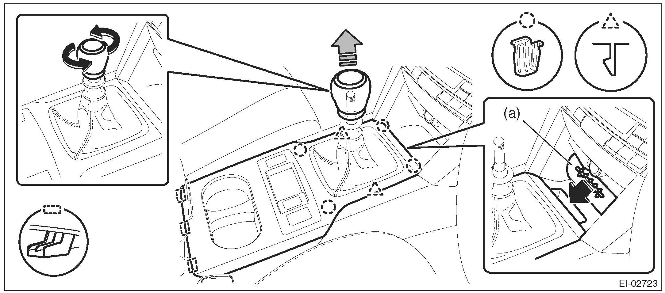 NOTE: Turn over the front center pocket mat (a) and pull up the console front cover from the slit.