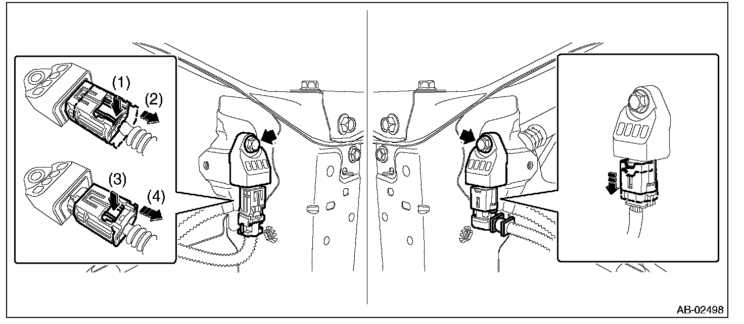4. Holding outer part, pull it in the direction of arrow to disconnect the connector.