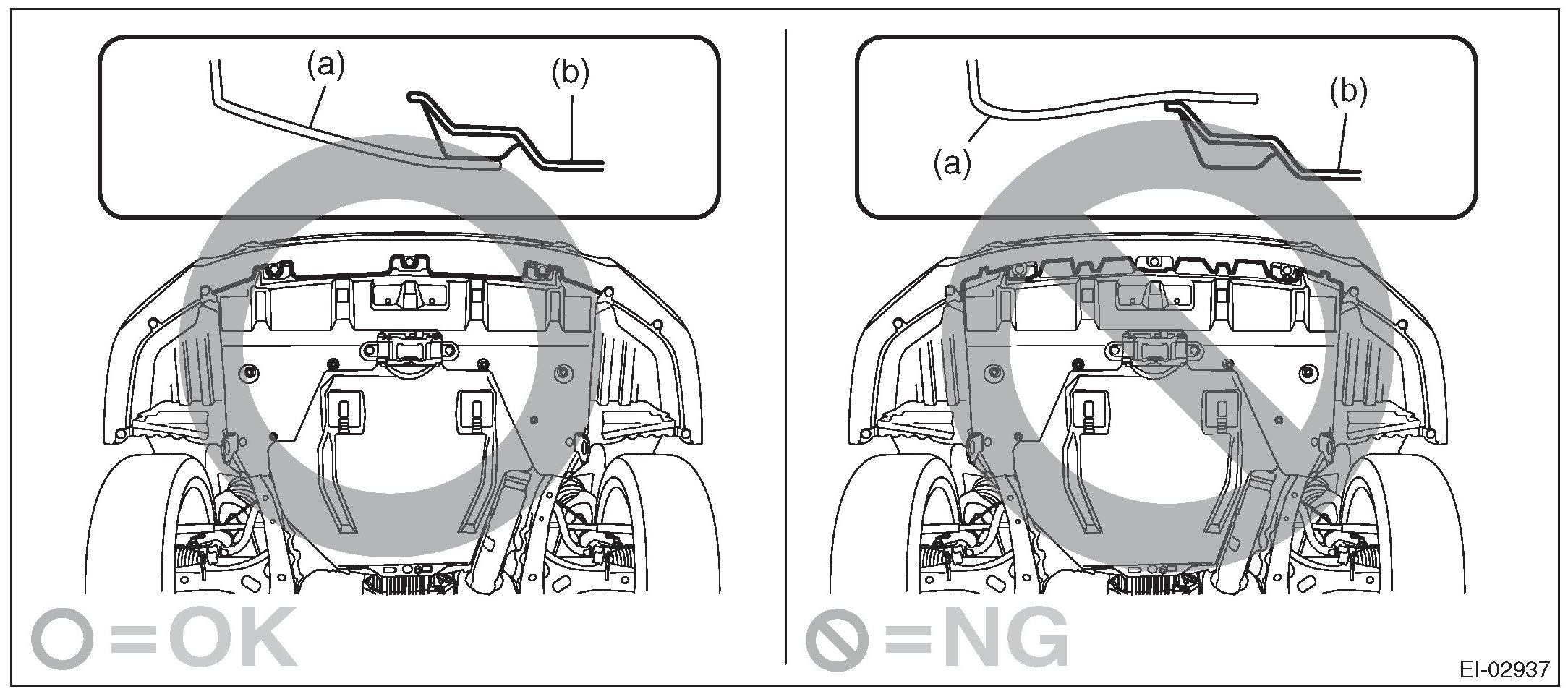 CAUTION: Install the bumper face so that the under cover front end (b) comes inside the front bumper face (a).