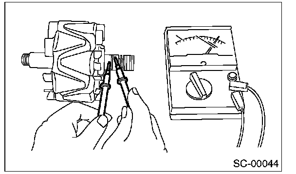3. Using a circuit tester, check the resistance between slip rings. If resistance exceeds the standard, replace the rotor.