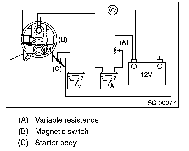 Apply the specified braking torque to starter. The condition is normal if the current draw and rotating speed are within standard.