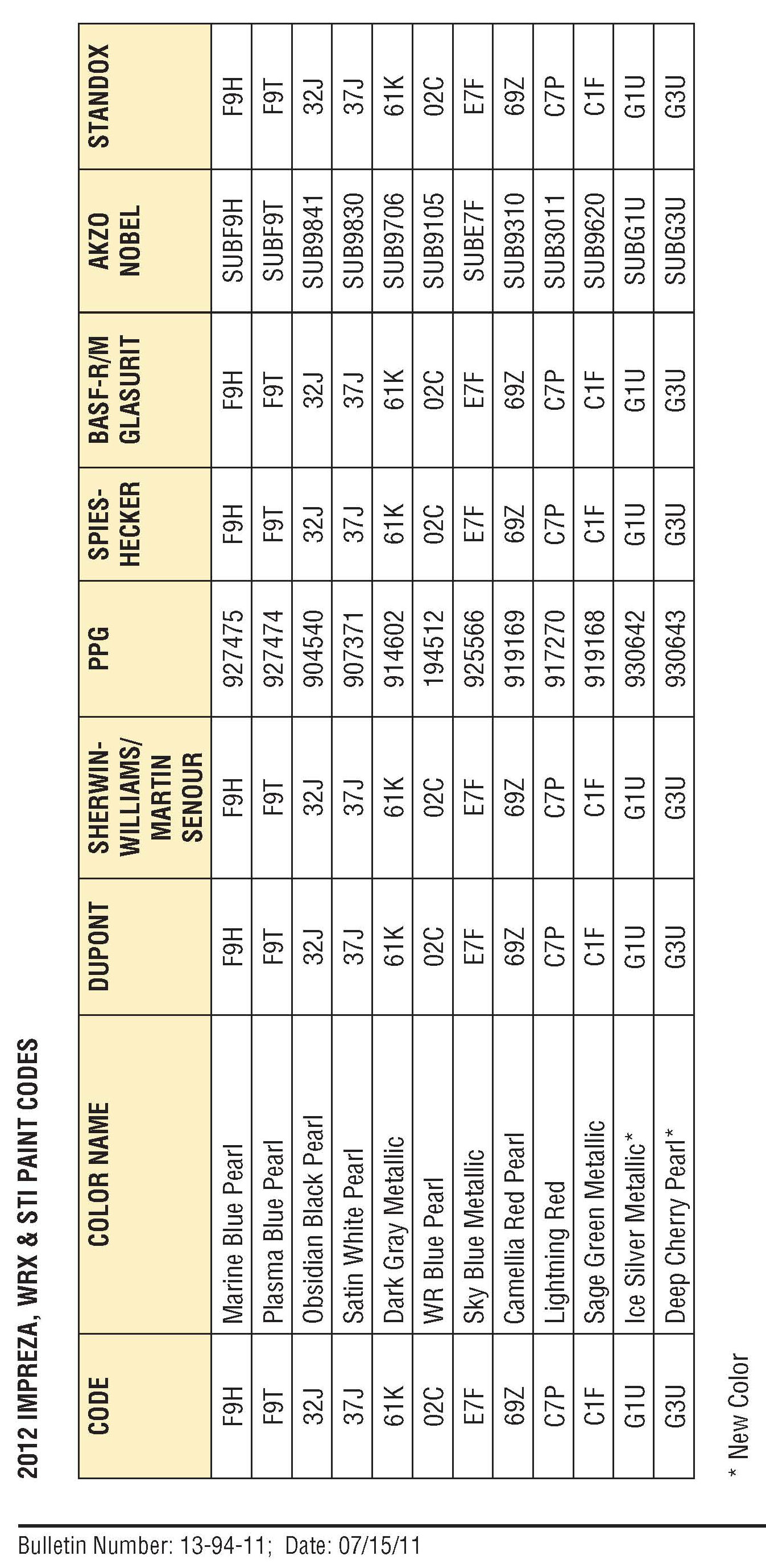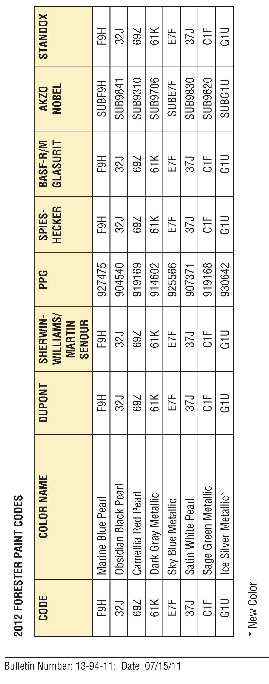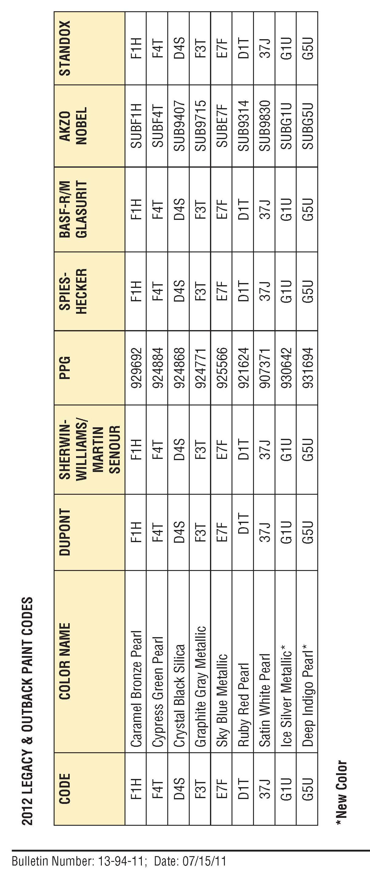 Various paint manufacturers designate their own stock numbers and coding information although many of the major suppliers are now using the SOA paint codes to help eliminate possible confusion Their color formulations are updated on a continual basis Some vendors may have different color names than those provided to them by SOA Be sure to double-check the codes and formulas beforehand to help insure an accurate color match Should discrepancies arise, please refer your Body Shop contact inquiries to the specific paint vendor or jobber for the most updated formula information.