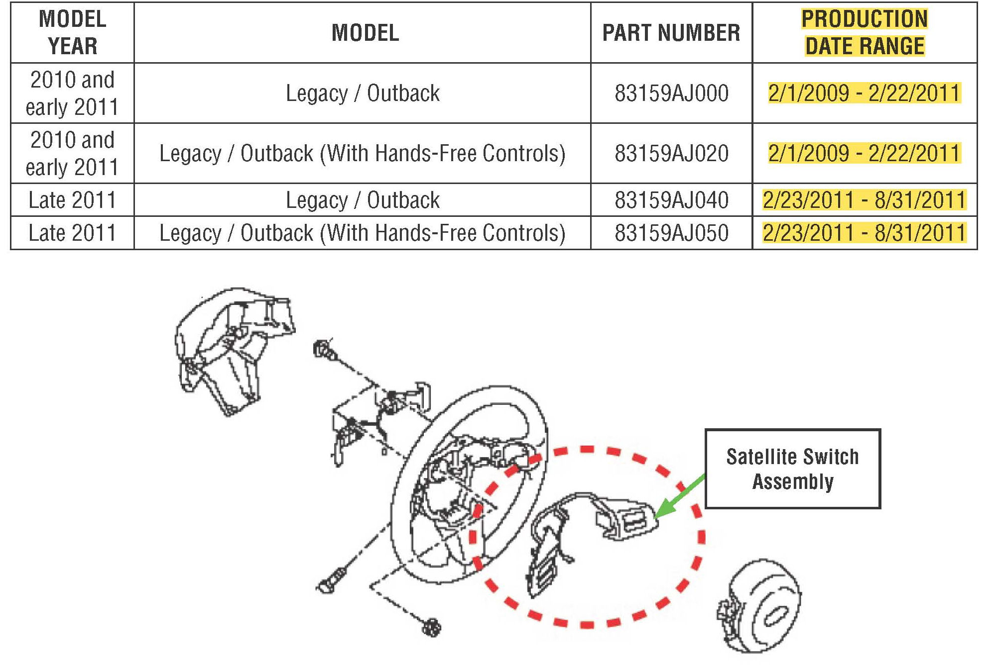 If you encounter a customer concern of the steering wheel satellite switch for the Volume or Mute operation does not function properly or is inoperative, the switch may need to be replaced. The steering wheel satellite switch is now available as a service part.