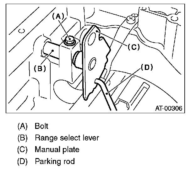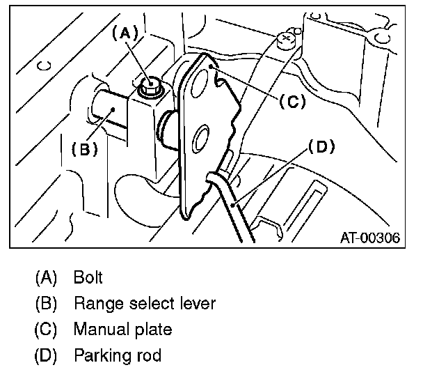 8) Remove the bolts securing range select lever, and then remove the select lever, manual plate and parking rod.