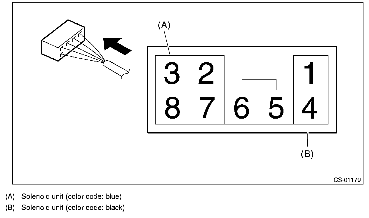 Insert the solenoid unit terminals to the harness connector.