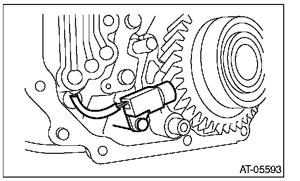 9) Remove the front vehicle speed sensor through the hole of AT transmission main case.