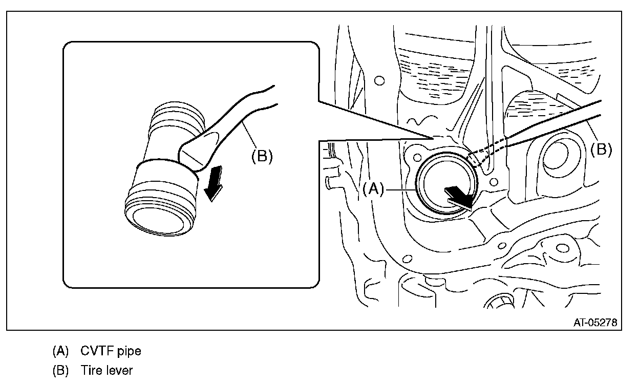 Remove by hooking the stepped portion of CVTF pipe with a tire lever etc.