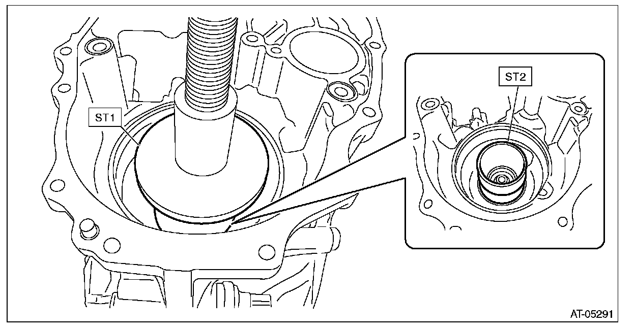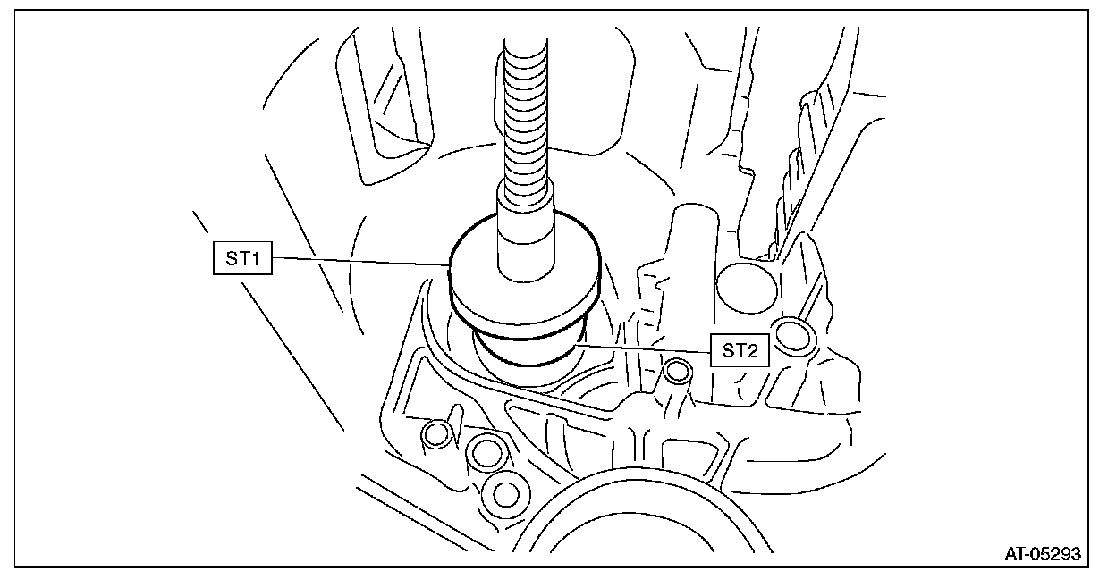 5) Using ST1 and ST2, install the roller bearing on secondary pulley side.