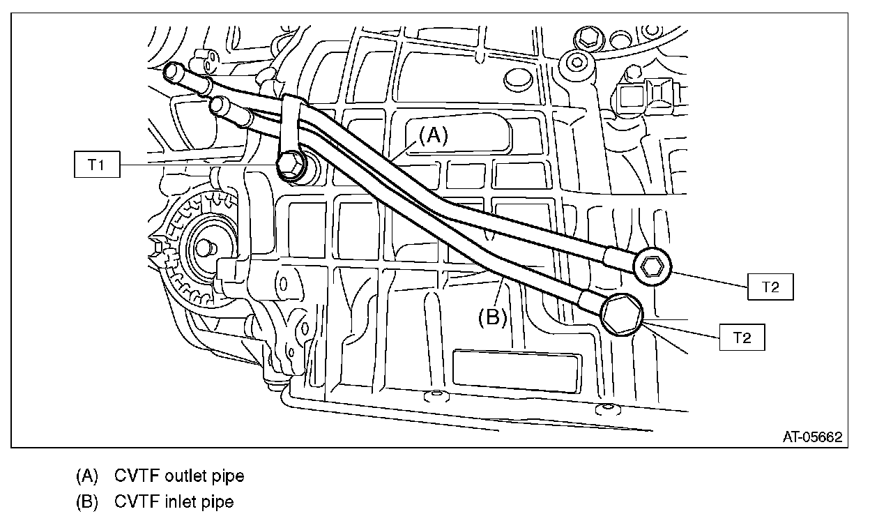After installing, make sure the CVTF pipe does not stick out of transmission case.
