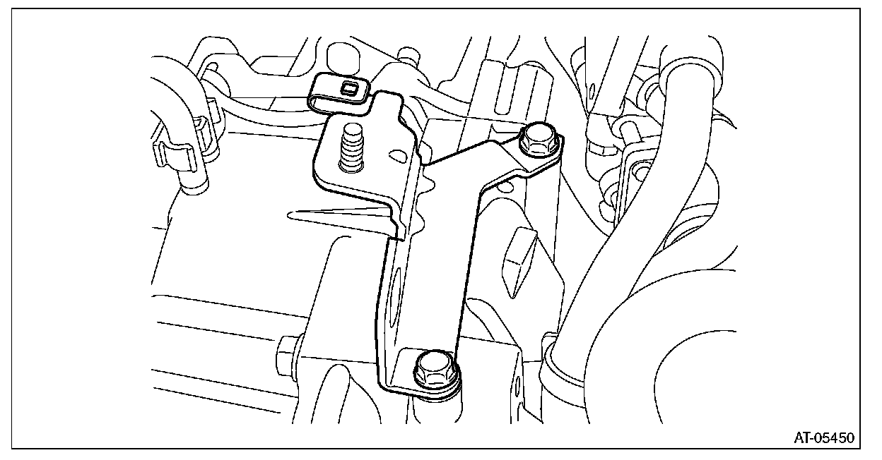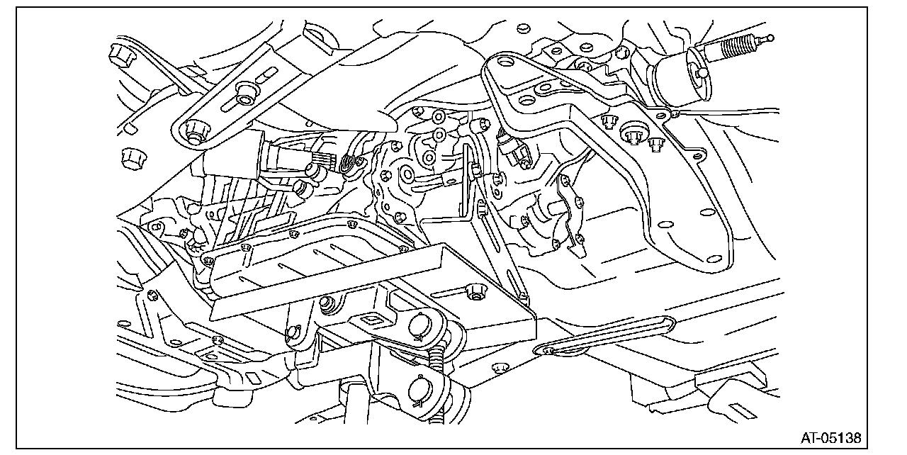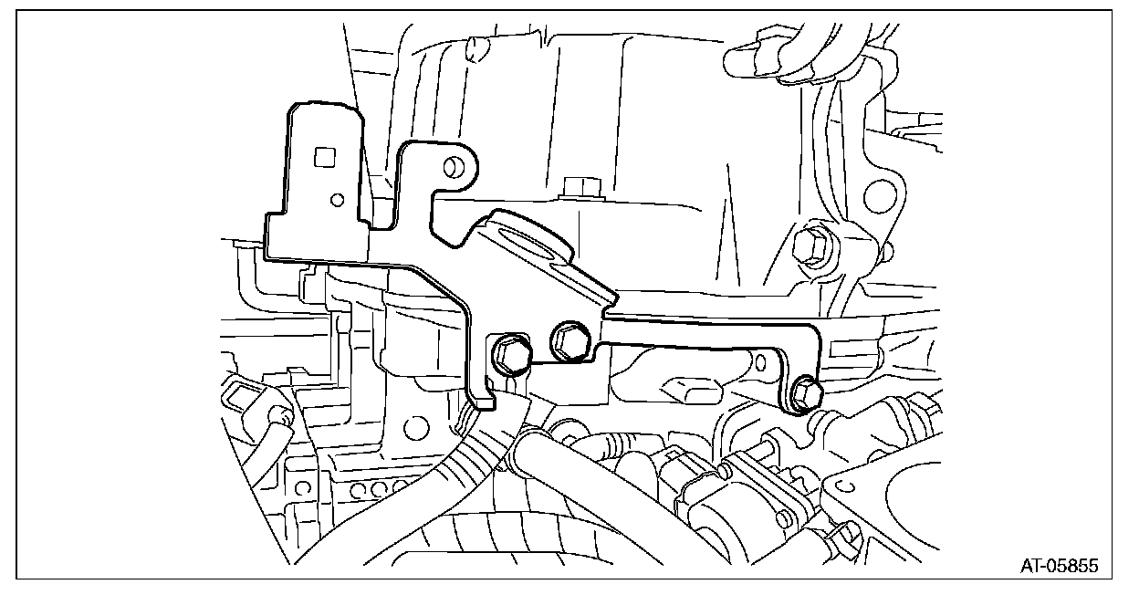 First, remove the transmission mounting bracket on the right side of vehicle, and then tilt the engine unit to remove the left transmission mounting bracket.