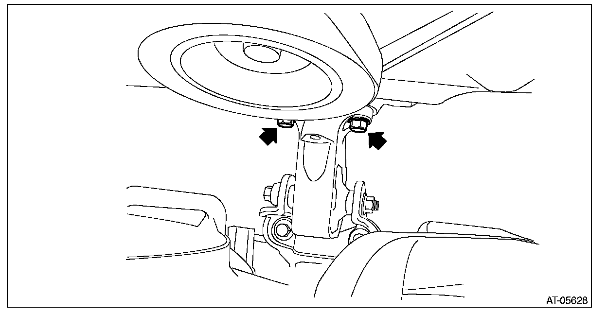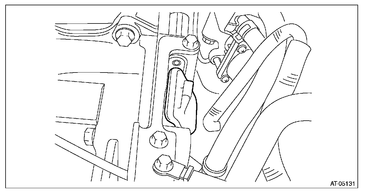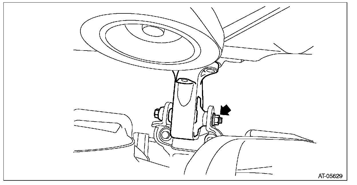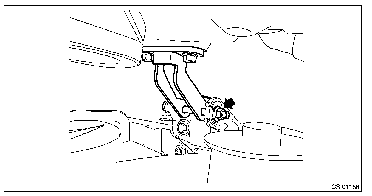 ^ If it is difficult to pull out the stud bolt from transmission mounting bracket, shake the engine unit slightly while lifting up.