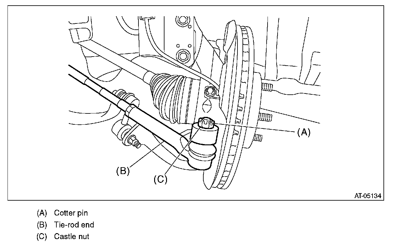19) After pulling off the cotter pin and removing the castle nut, use a puller to remove the tie-rod end from the knuckle arm.