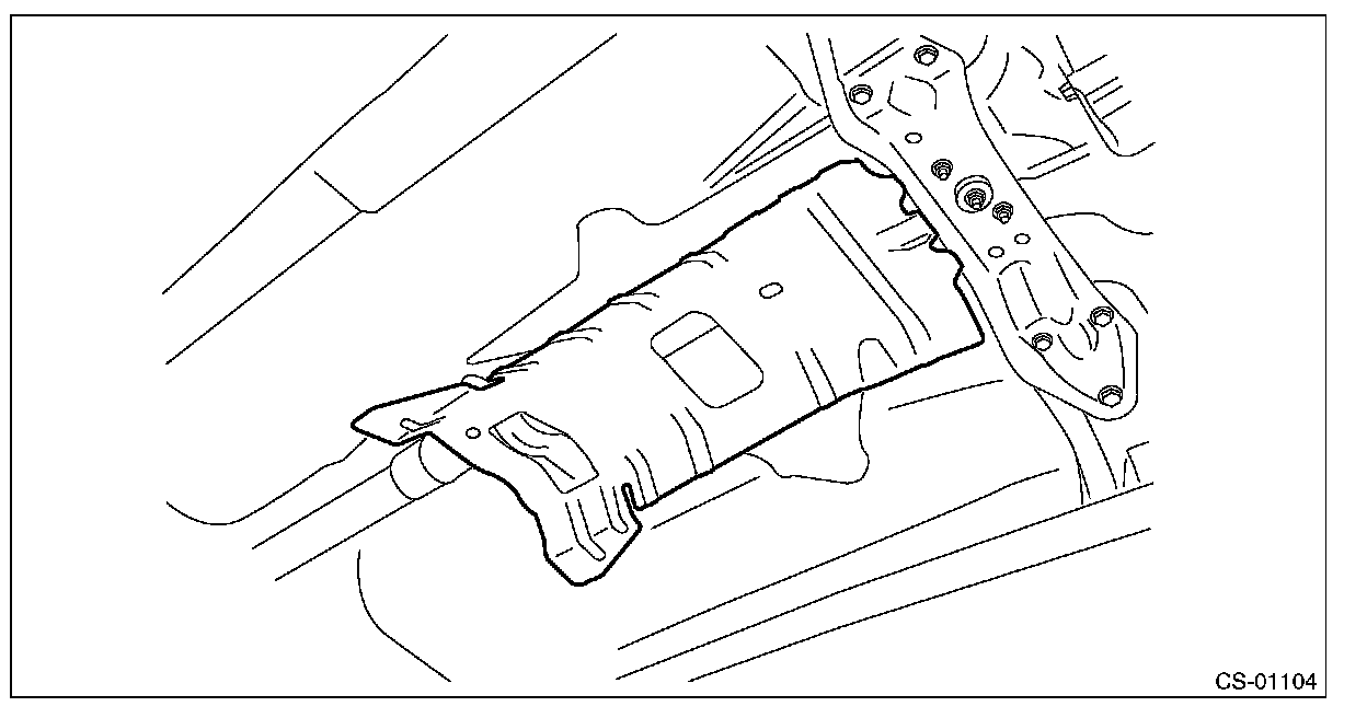 When lowering the transmission rear end, be careful not to let the converter case and steering mechanical parts contact each other.
