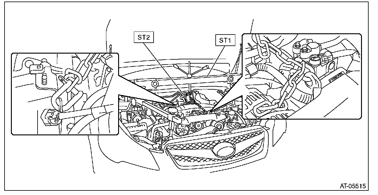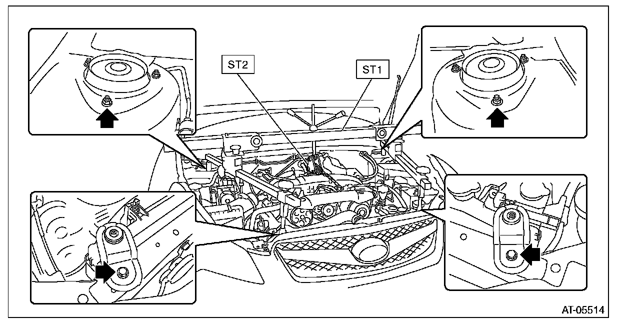 ^ Set the arms of ST (ENGINE HANGER) at the locations shown in the figure.
