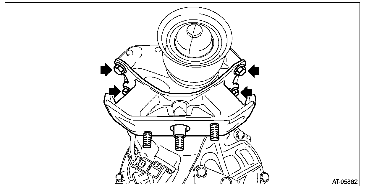 Remove it while moving the transmission jack up and down so that the engine and transmission remain directly aligned.