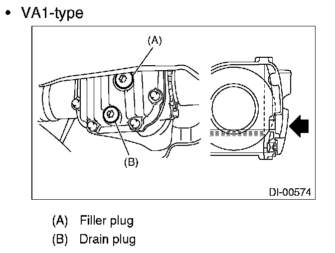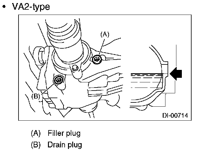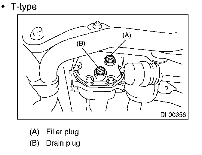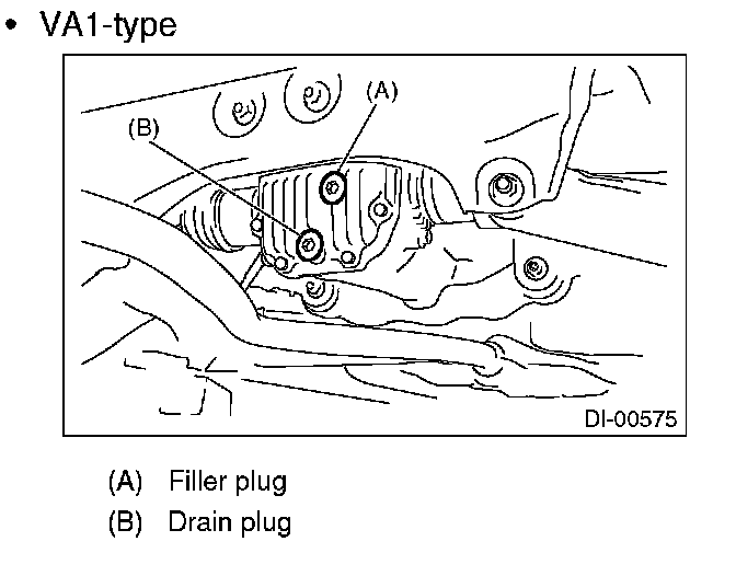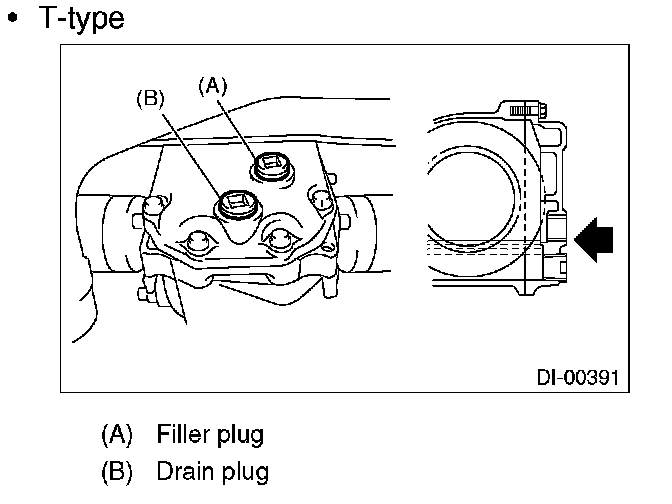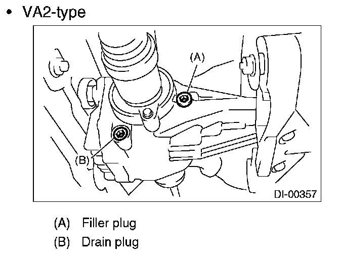 ^ Be careful not to spill the differential gear oil on exhaust pipe. If gear oil is spilled, wipe it off completely.