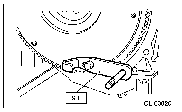 2) Tighten the flywheel mounting bolts to the specified torque.