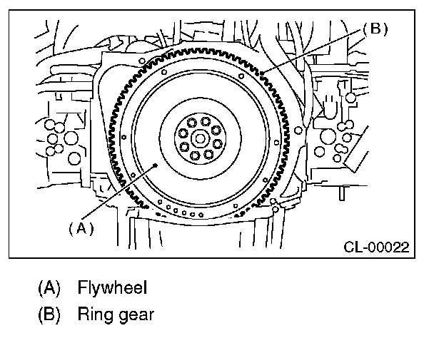 1) If there is damage or defectiveness in the facing sliding surface or ring gear, replace the flywheel.
