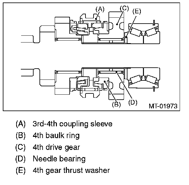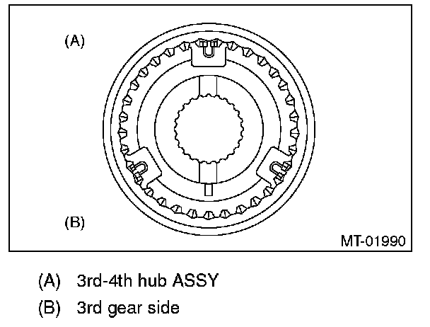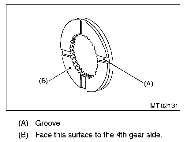 ^ Install the 3rd-4th coupling sleeve with the groove side facing the 3rd drive gear.