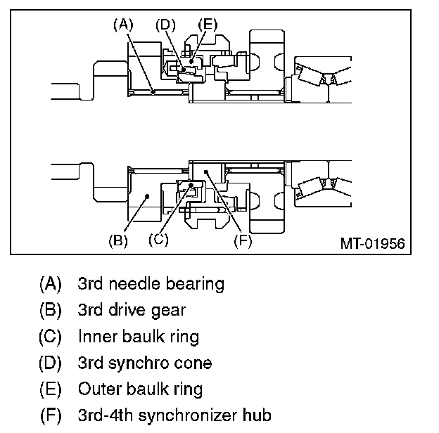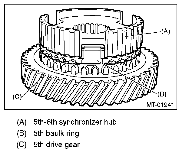 ^ Correct or replace if the cone that contacts the baulk ring is rough or damaged.