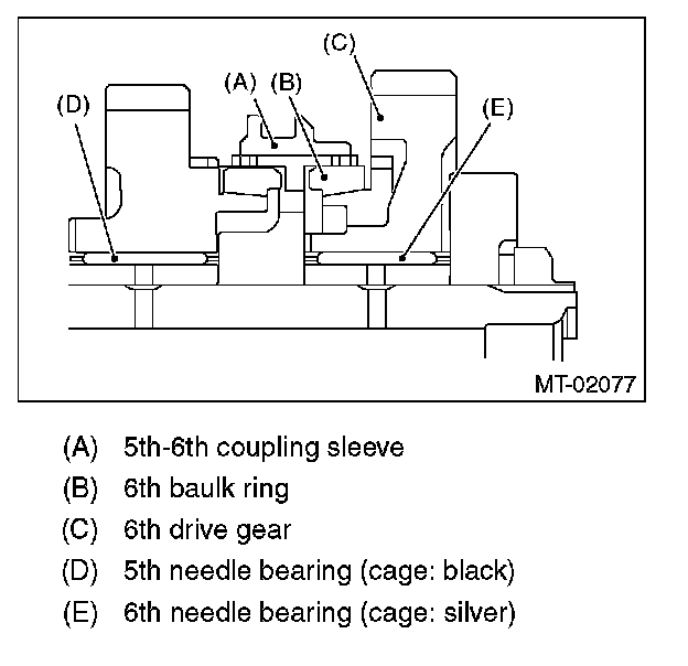 5) Remove the needle bearing, 6th baulk ring and 5th-6th coupling sleeve.