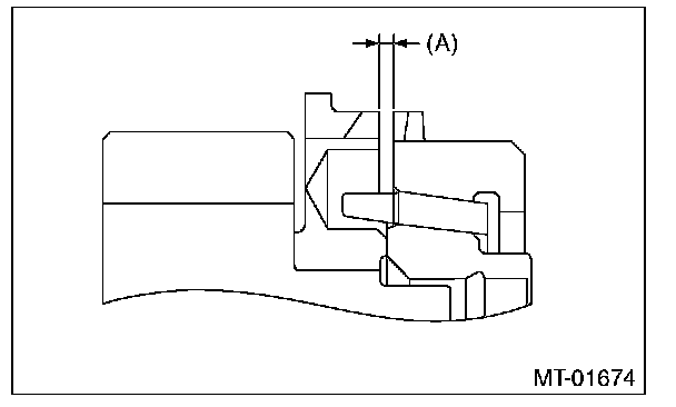 ^ If the gap between the end faces of the ring and the gear splined part is excessively small, check the clearance (A) while pressing the ring against the cone.