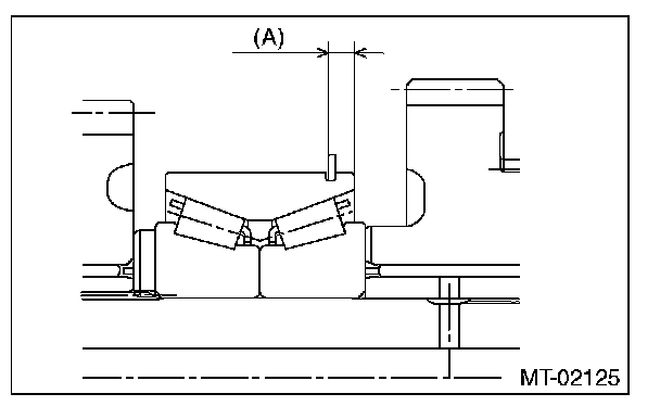 Measure the protrusion amount (A) of ball bearing from transmission main case surface, and select a suitable plate in the following table.