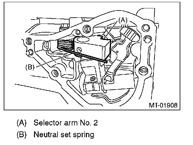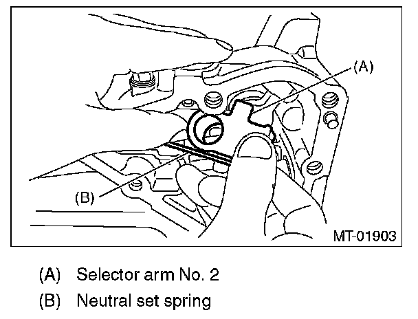 11) Install the selector arm No. 2 to neutral set spring.