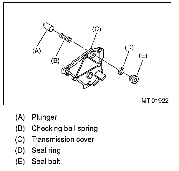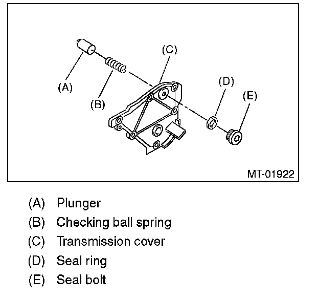 18) Remove the plunger and check ball spring from transmission cover.
