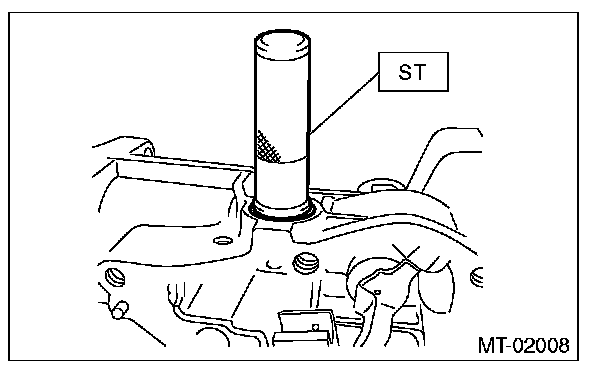 7) Using the ST, install the oil seal to the transfer case.