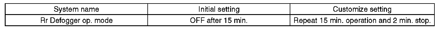 CAUTION: Check whether the rear defogger operation mode setting is in initial setting or customize setting before performing inspection.