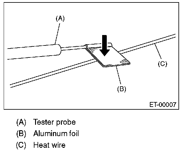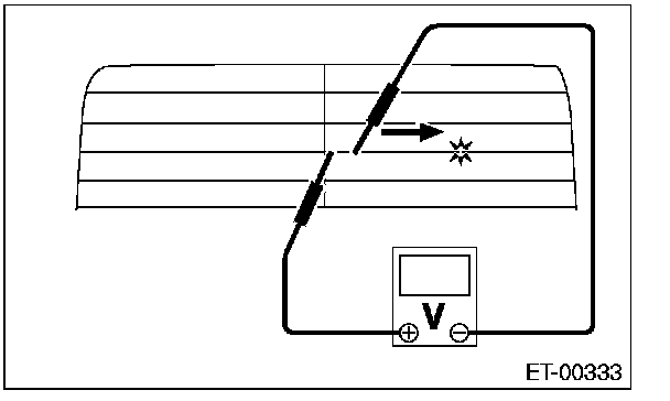 8. Move the tester probe on the negative (-) side slowly along the heat wire. If voltage changes from zero while moving the tester probe, heat wire is open at the voltage change point.
