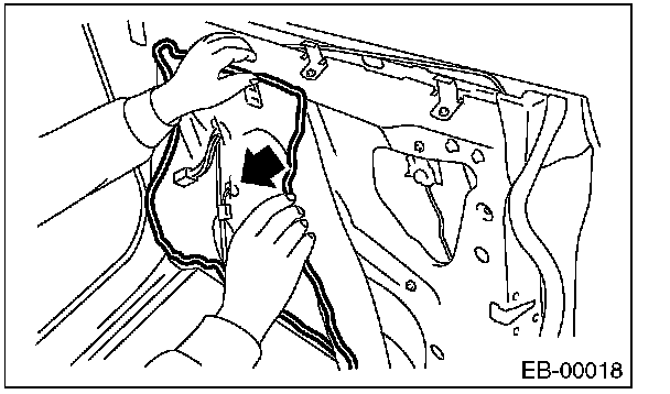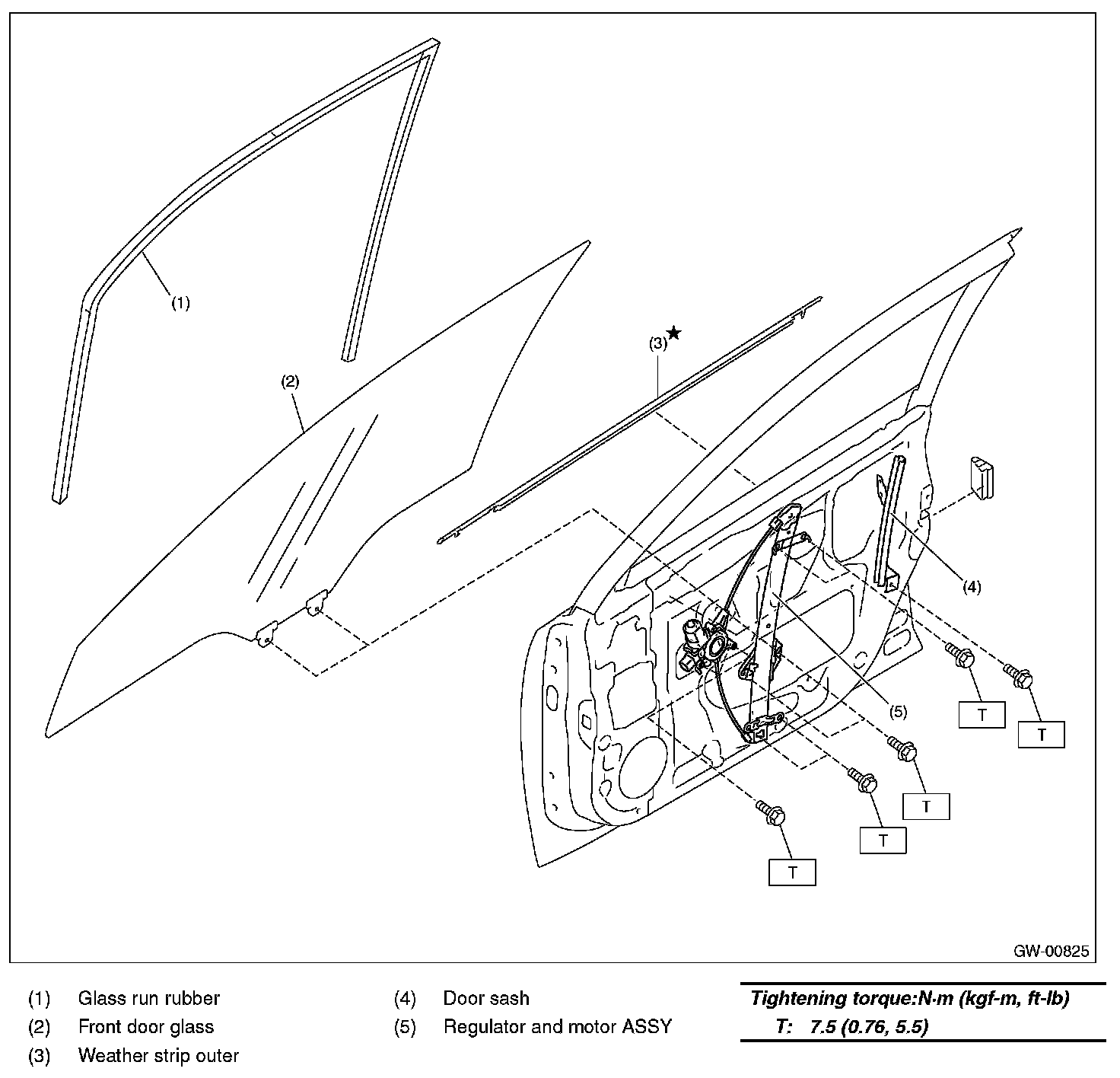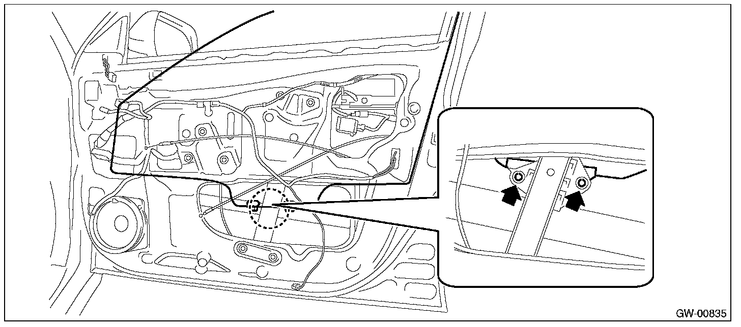 CAUTION: Make sure that the glass run rubber is placed securely in the door frame and sash.