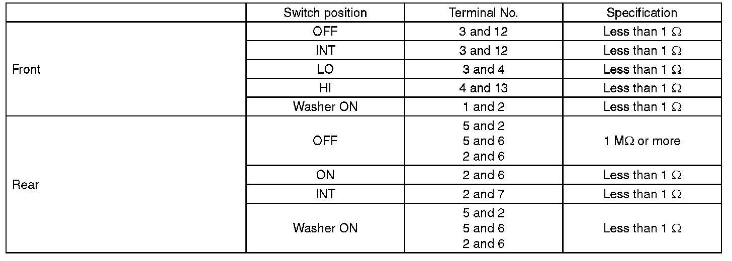 Wiper Switch: Testing and Inspection