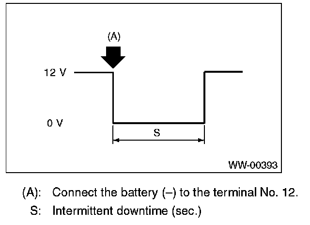 5. Connect the battery ( ) to the terminal No. 2 and check the voltage between terminal No. 4 terminal No. 3 during intermittent operation.
