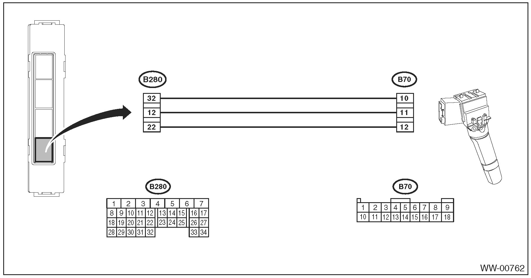 Connector & terminal (B280) No. 2 (+) - Chassis ground (-):