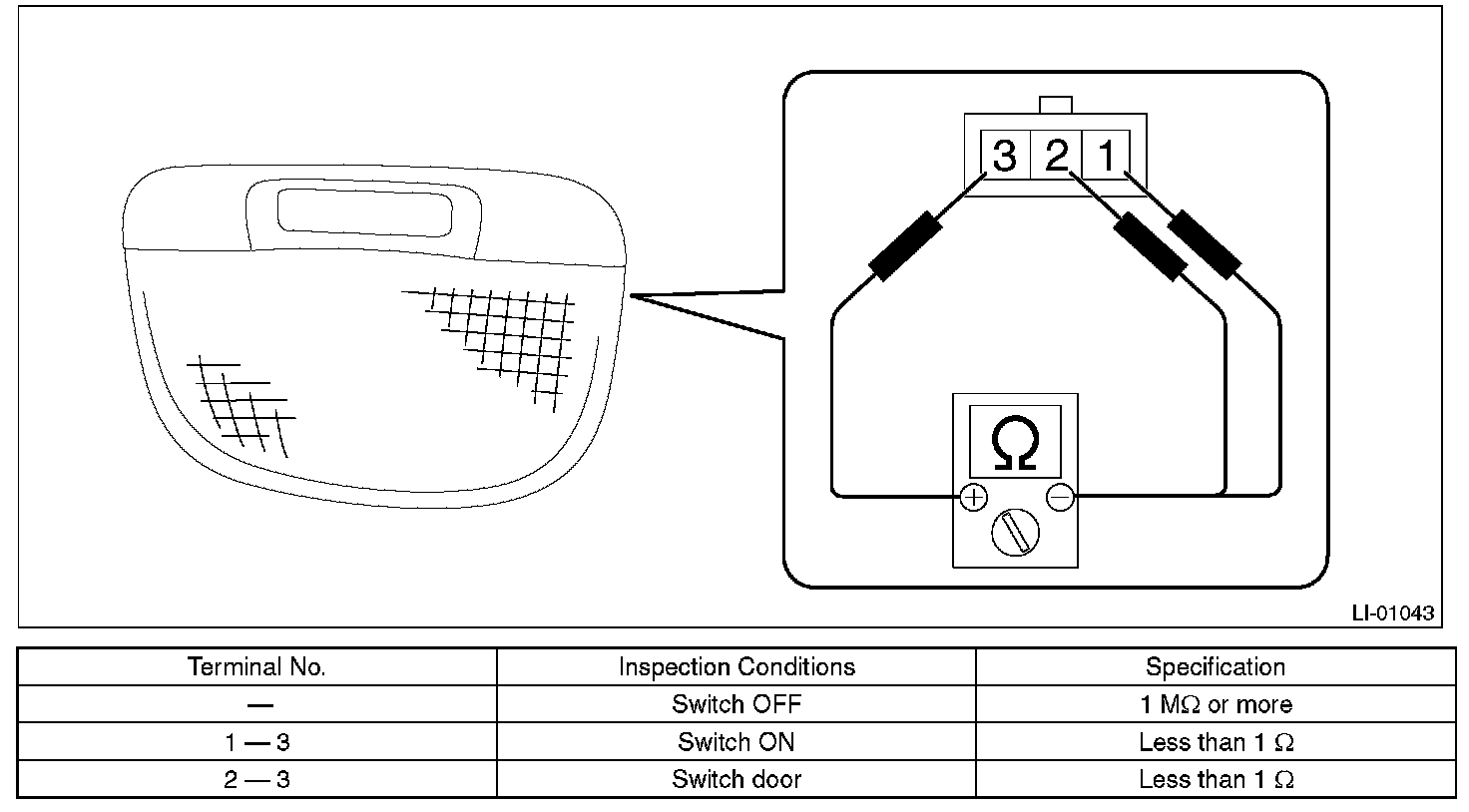 2. Measure the resistance between room light switch terminals.