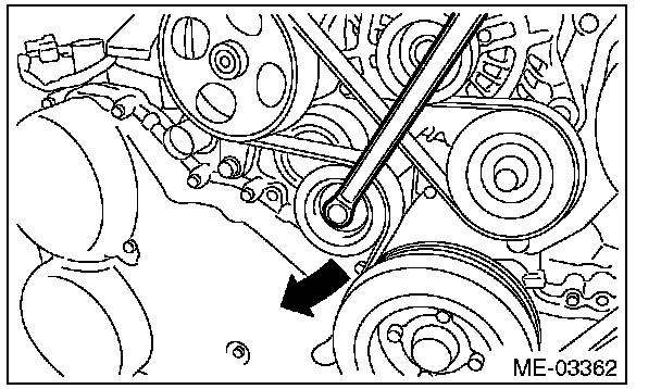 3) Install the tool to the pulley bolt of the belt tension adjuster assembly.