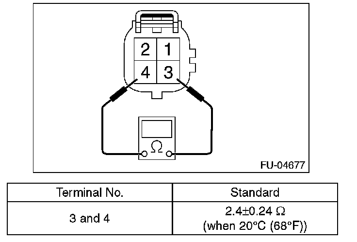 Measure the resistance between front oxygen (A/F) sensor terminals.