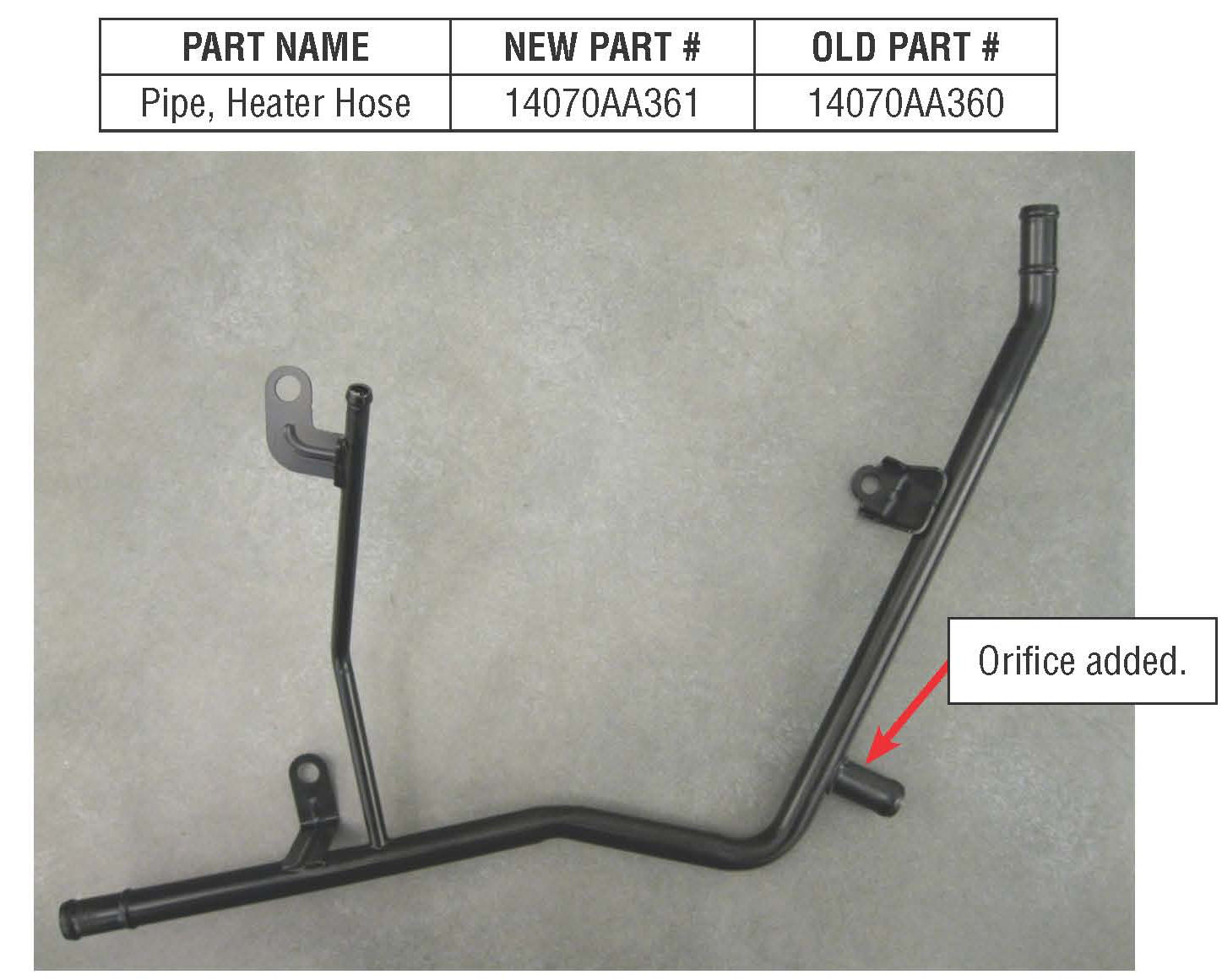 The new style heater hose pipe has not been incorporated into Tribeca production yet. This bulletin will be updated once countermeasure information is made available.
