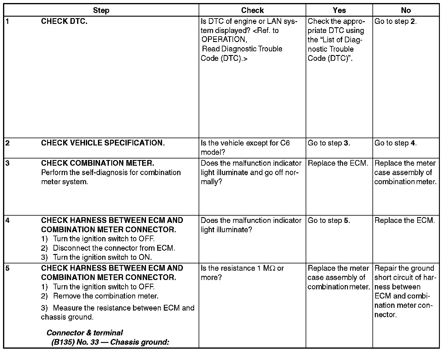 Although malfunction indicator light comes on when the engine runs, DTC is not shown on the Subaru Select Monitor or general scan tool display.
