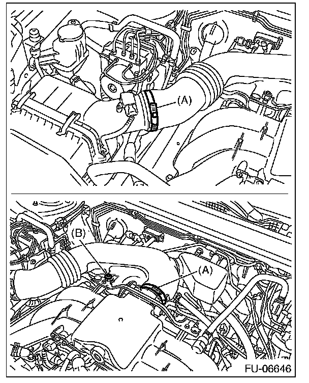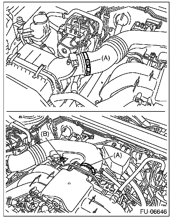 3. Loosen the clamp (A) which connects the air intake boot assembly.