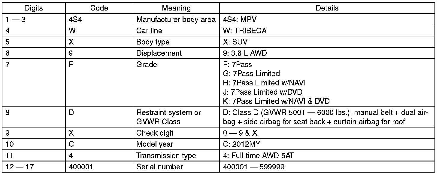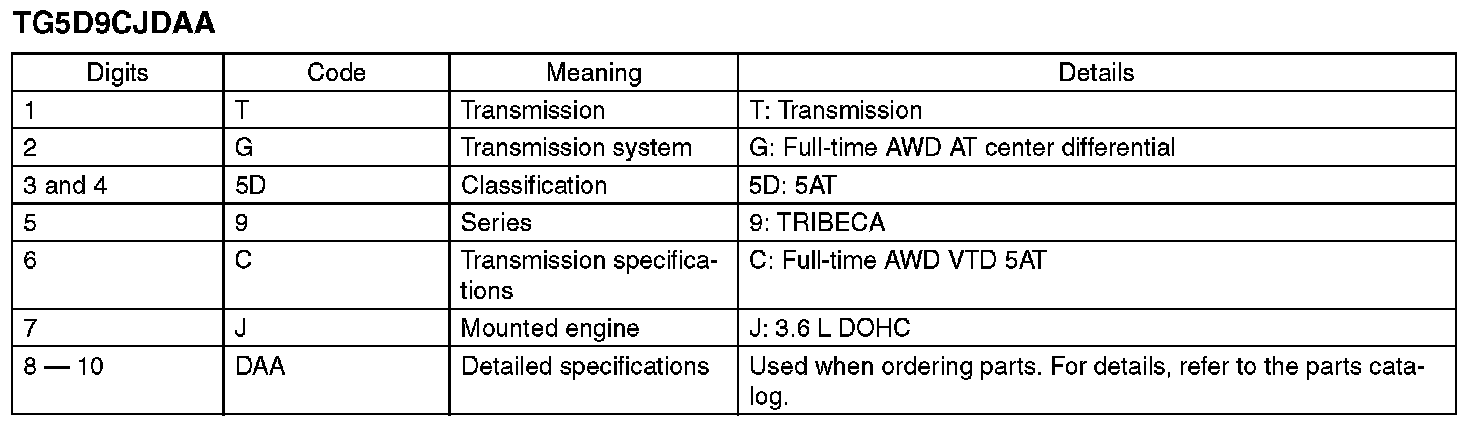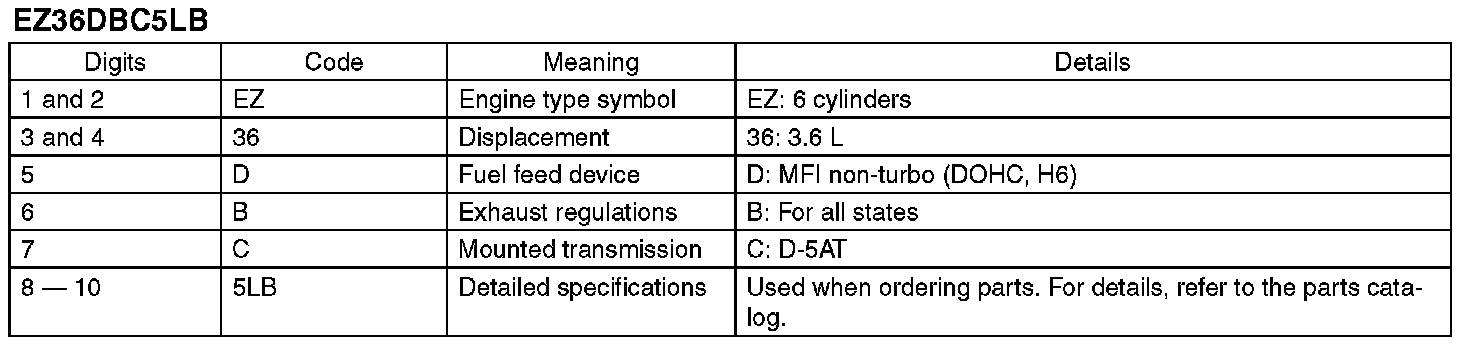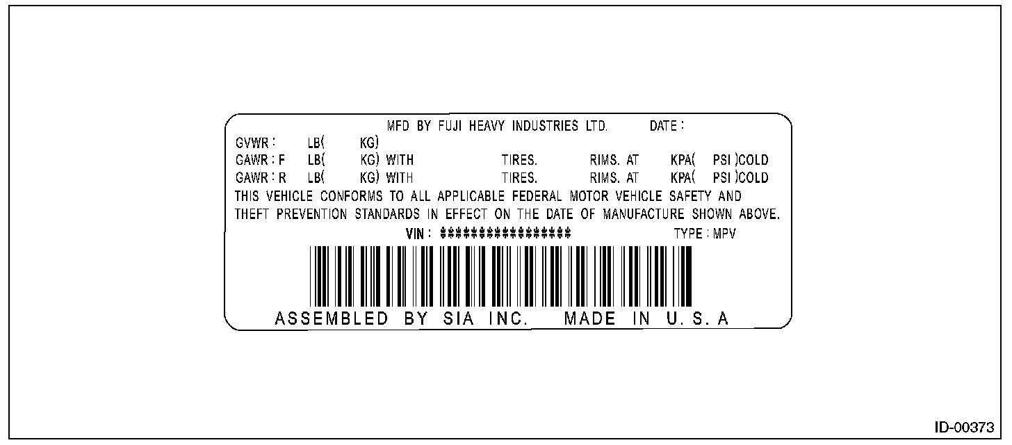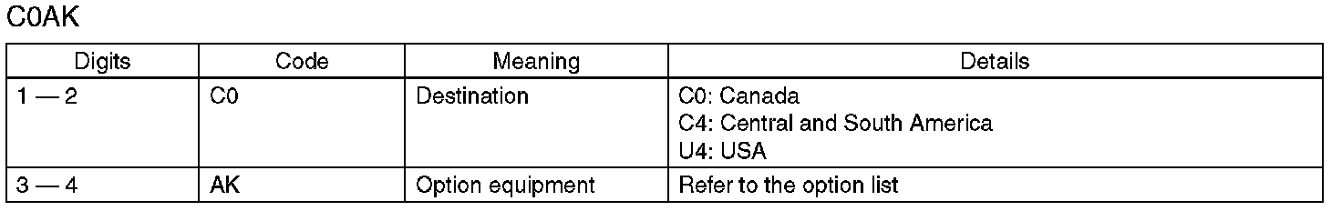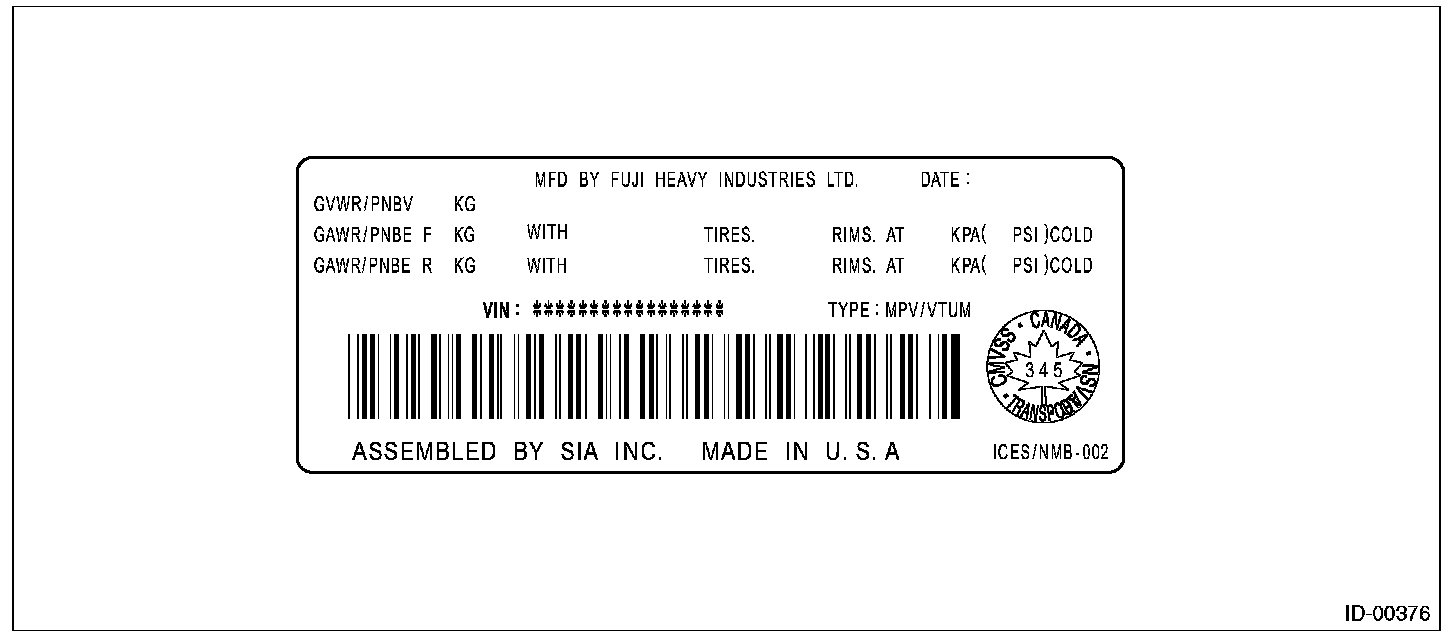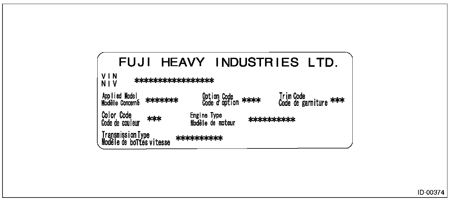 The model number label indicates the type, V.I.N, applied model, option code, trim code, engine type, transmission type and the exterior color code. This information is helpful when placing orders for parts.