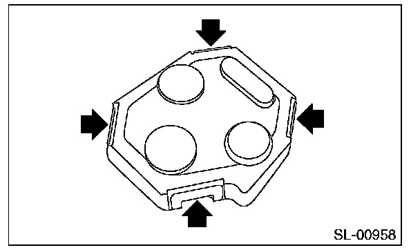 1. Disassemble the keyless transmitter, and take out the transmitter case (1).