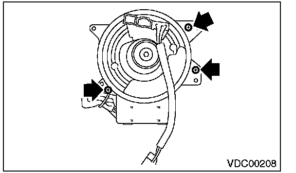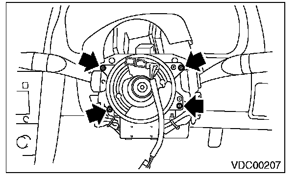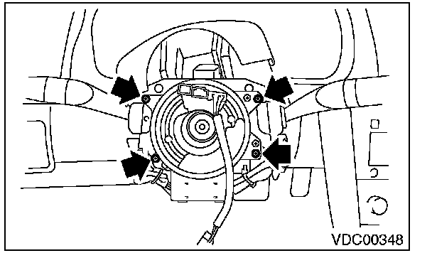8) Remove the screws which secure the roll connector to steering column.