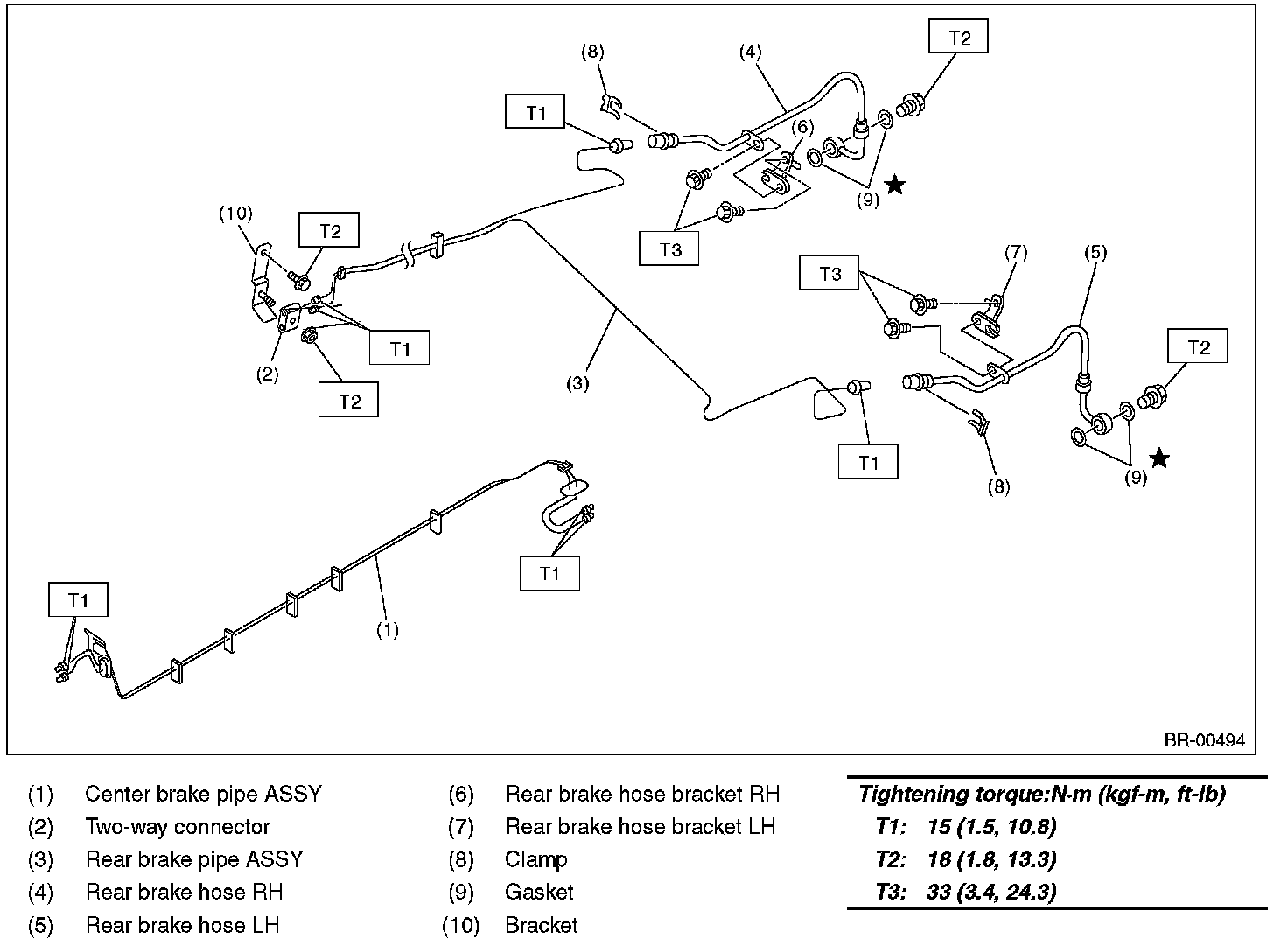 CENTER AND REAR BRAKE PIPES AND HOSES