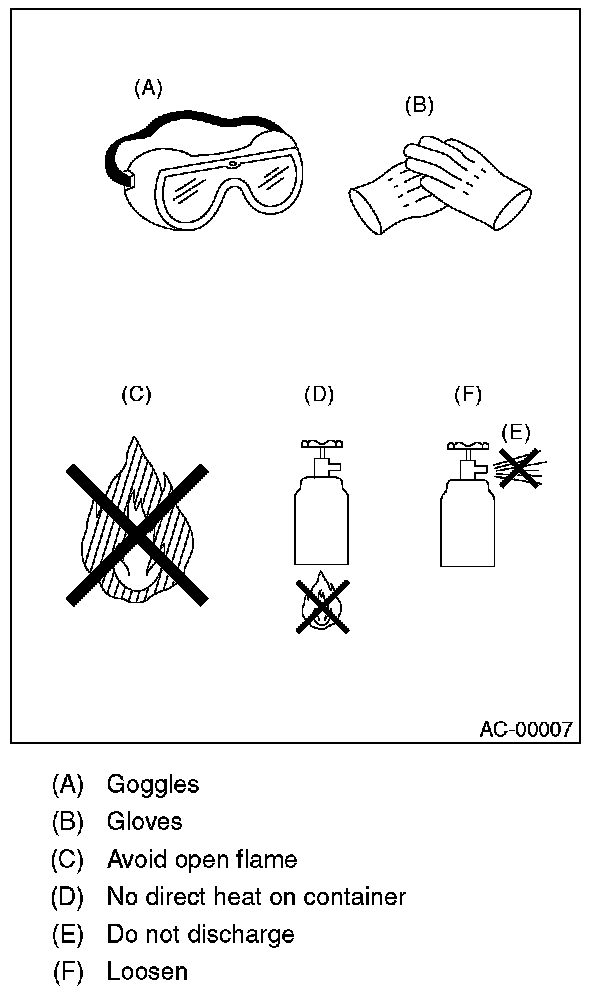 - Do not drop or subject a service can to impacts. (Observe the precautions and operation procedure described on the refrigerant can.)